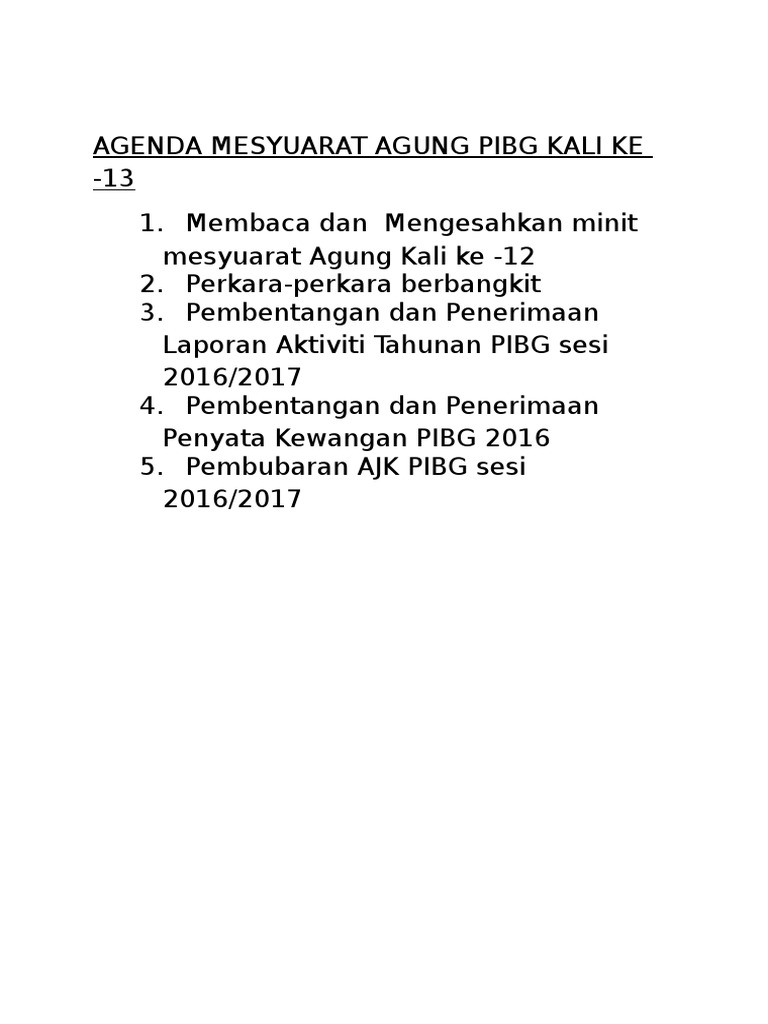 Agenda Mesyuarat Agung Pibg Kali Ke