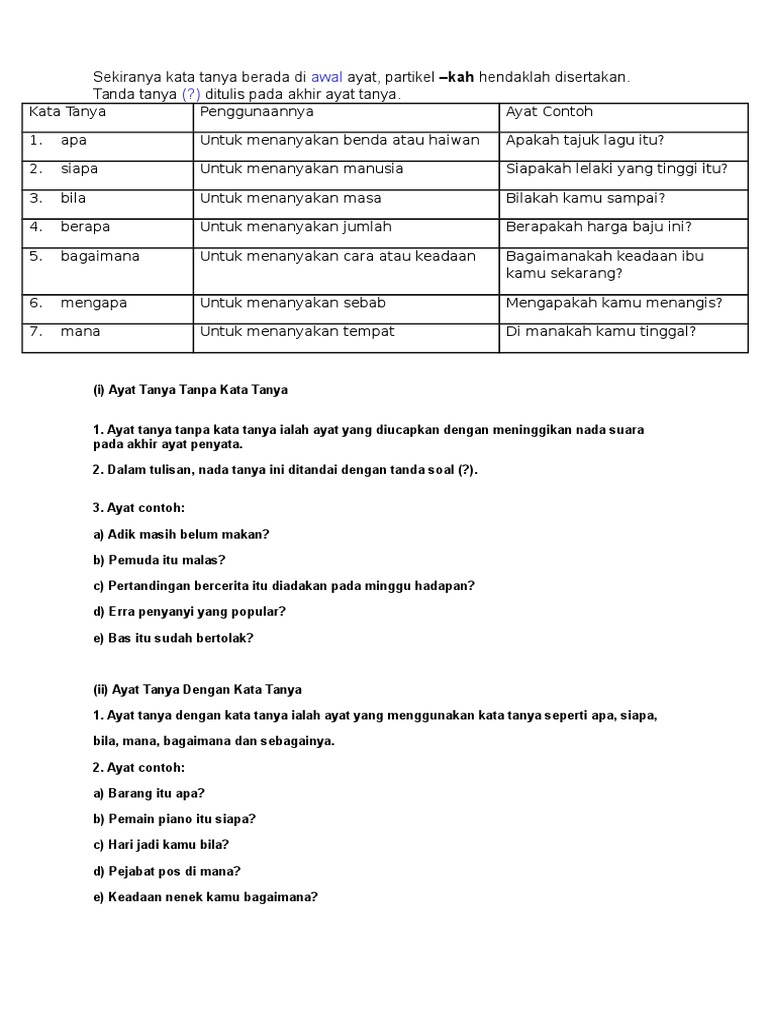 Ayat Tanya Dengan Kata Tanya Dan Tanpa Kata