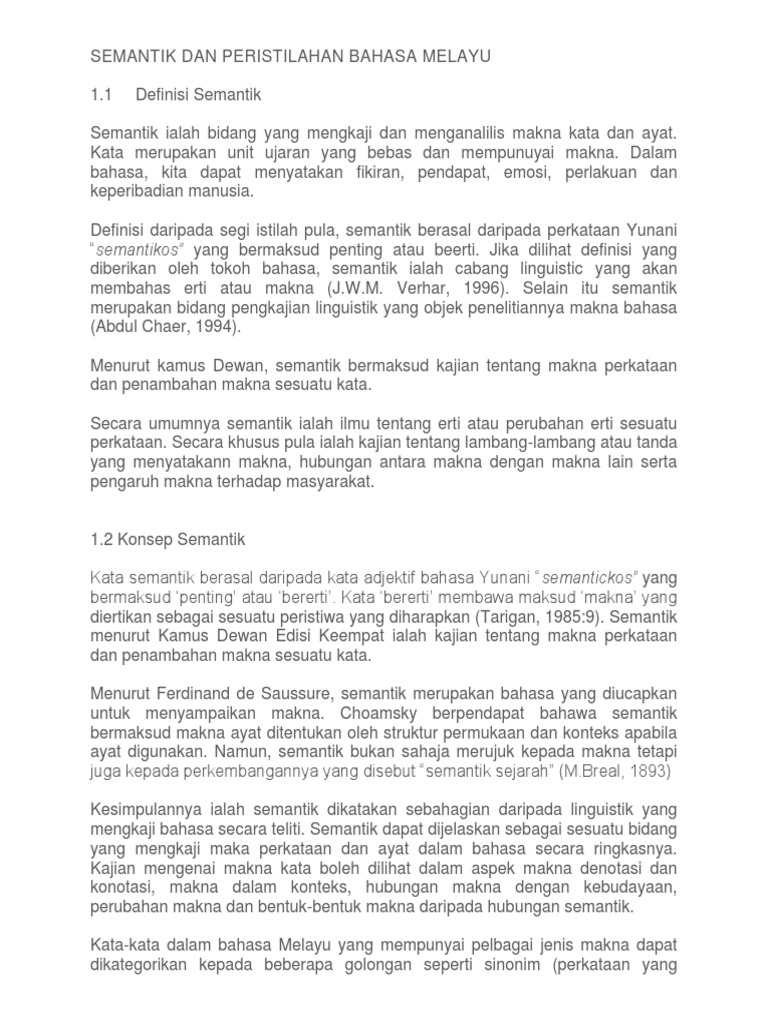 16 Semantik Dan Peristilahan Bahasa Melayu Docx