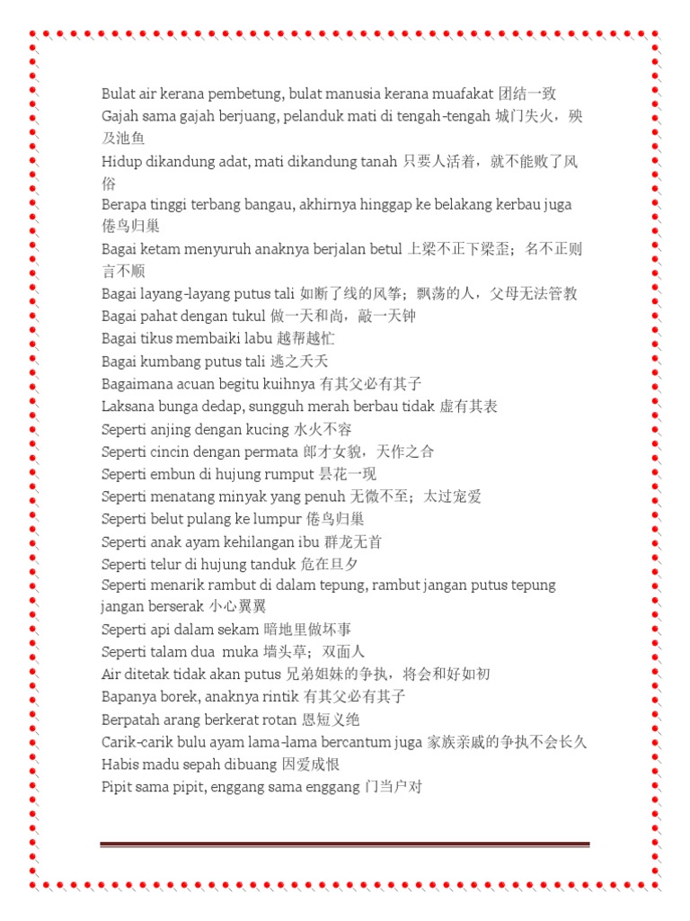 113馬來文諺語 附加華文注解 113 Peribahasa Dan Perumpamaan Justyou