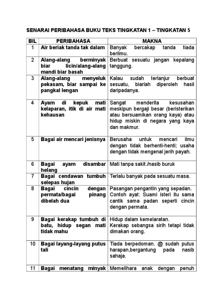 Senarai Peribahasa Buku Teks