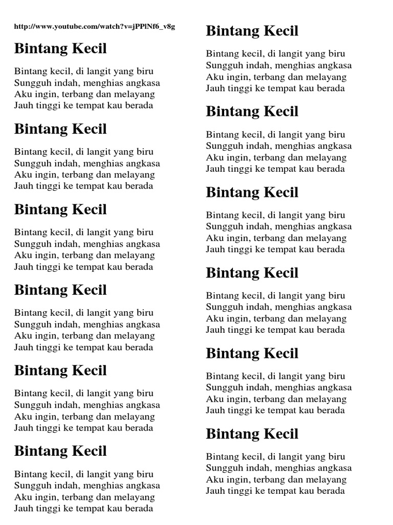 Lirik Lagu Kanak Kanak Bintang Kecil Pptx