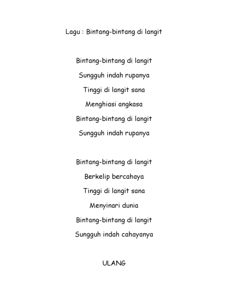 Bintang Bintang Di Langit Menghiasi Angkasa Lirik