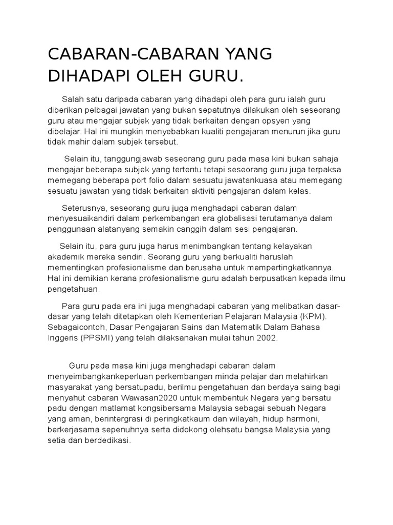 Doc Cabaran Cabaran Yang Dihadapi Oleh Guru Dalam Profesion Dan Langkah Langkah Untuk Mengatasinya Sandy Lo Academia Edu