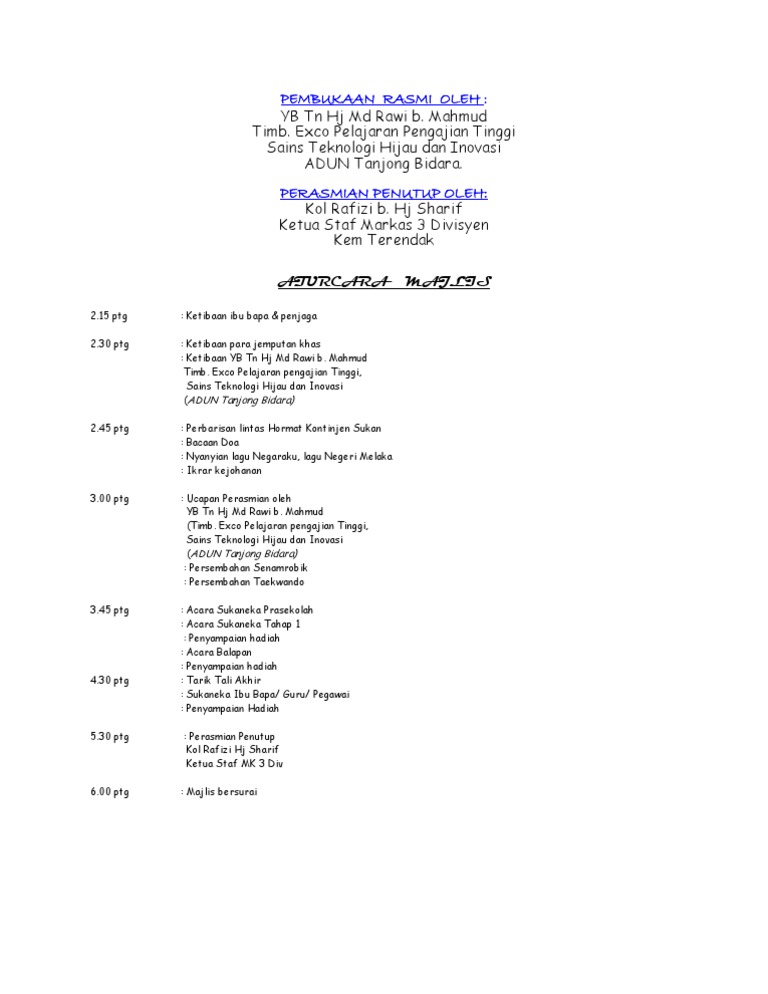 Contoh Aturcara Majlis Perasmian