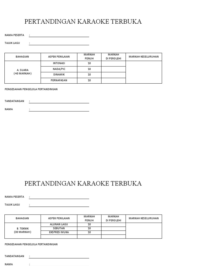 Borang Pemarkahan Pertandingan Karaoke Docx