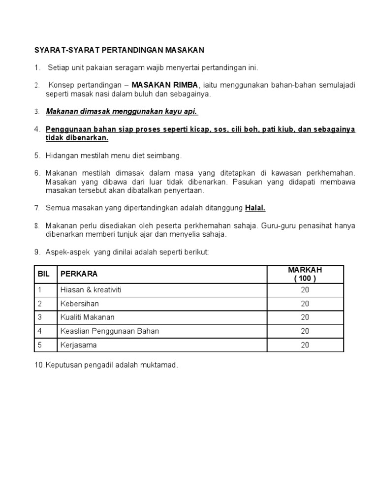 Borang Pemarkahan Pertandingan Memasak 1 Docx