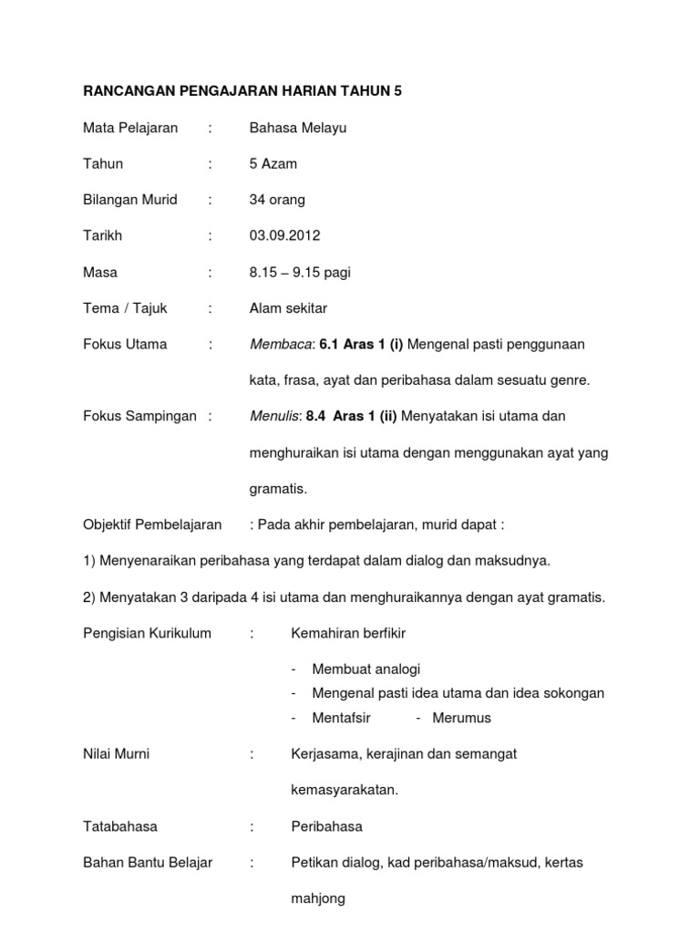 Hsp Bahasa Melayu Tahun 5