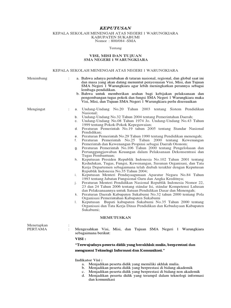 Contoh Sk Penetapan Visi Misi Dan Tujuan Sekolah Bentuk File Word Contoh Surat Lamaran Kerja Contoh Surat Resmi Conto Matematika Kelas 8 Sekolah Pendidikan