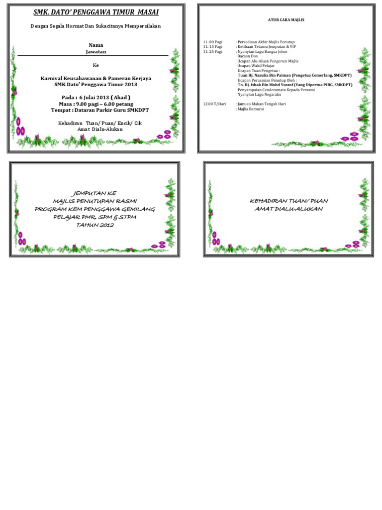 Format Kad Jemputan Majlis Rasmi