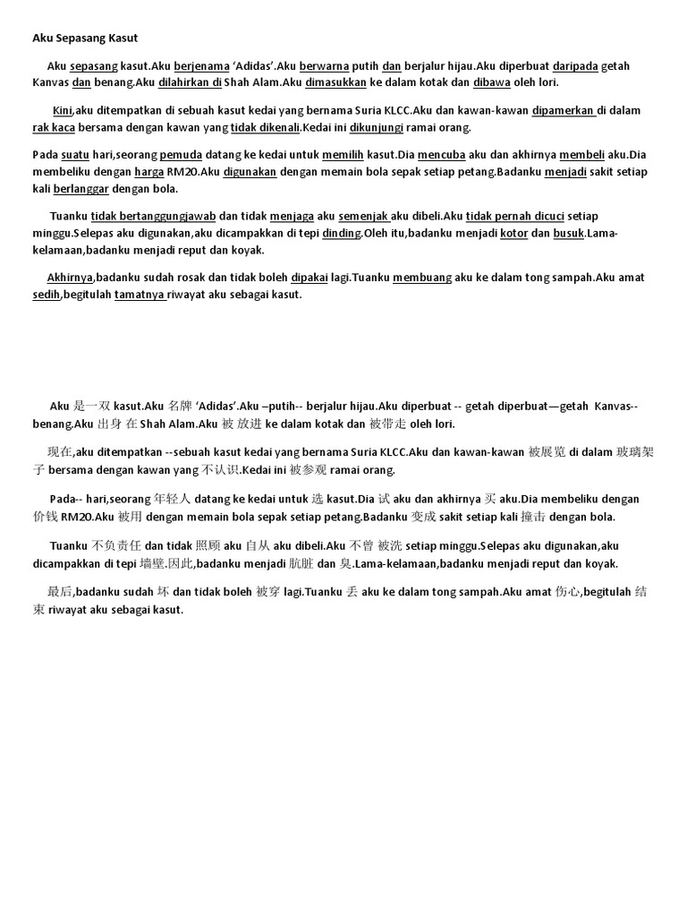 Contoh Karangan Sekolah Rendah Aku Sepasang Kasut