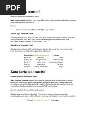 Kata Kerja Transitif Dan Kata Kerja Tak Transitif Pdf Document