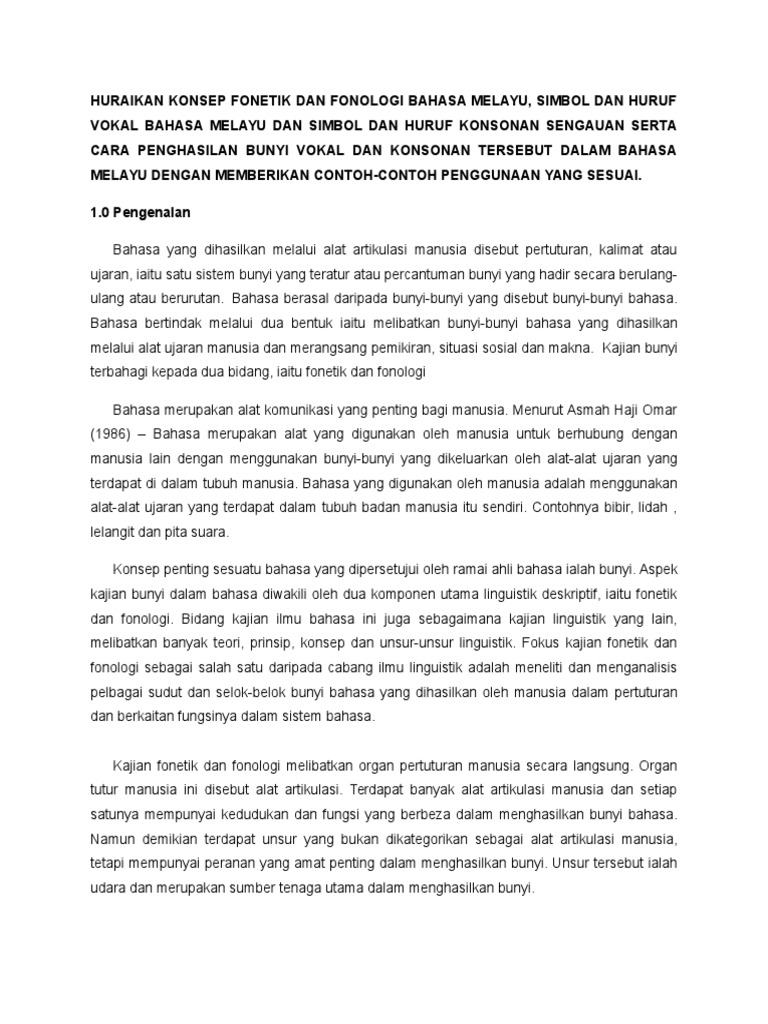 Huraikan Konsep Fonetik Dan Fonologi Bahasa Melayu