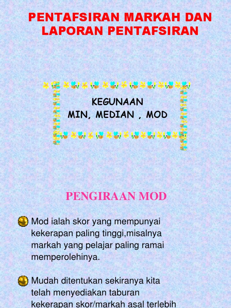 Ukuran Kecenderungan Memusat Min Mod Median Edup3063 Pentaksiran