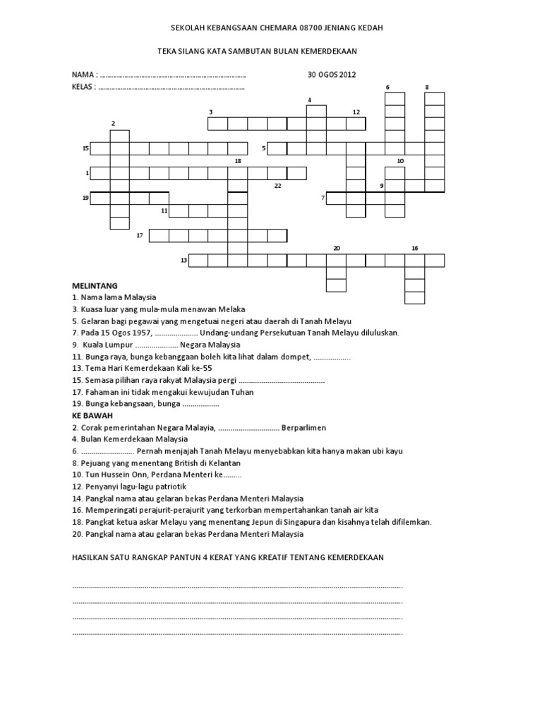 Contoh Teka Silang Kata Dan Jawapan Kemerdekaan Yang Cute766