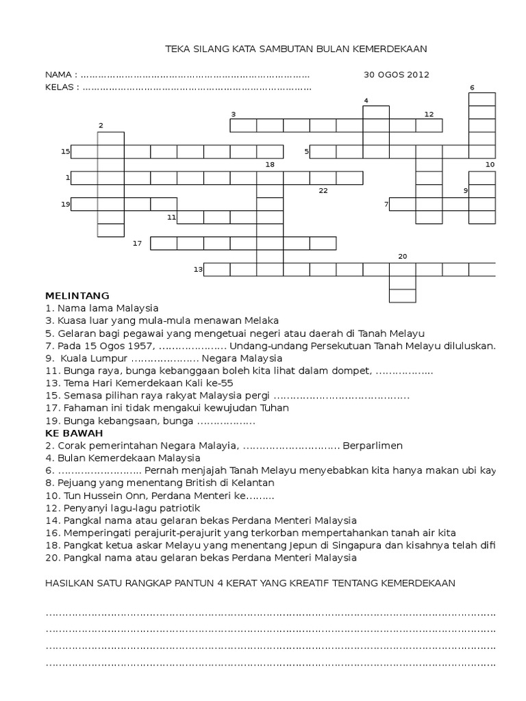 Bermacam Teka Silang Kata Kemerdekaan Dan Jawapan Yang Sangat Terbaik Untuk Ibubapa Muat Turun Pekeliling Terbaru Kerajaan