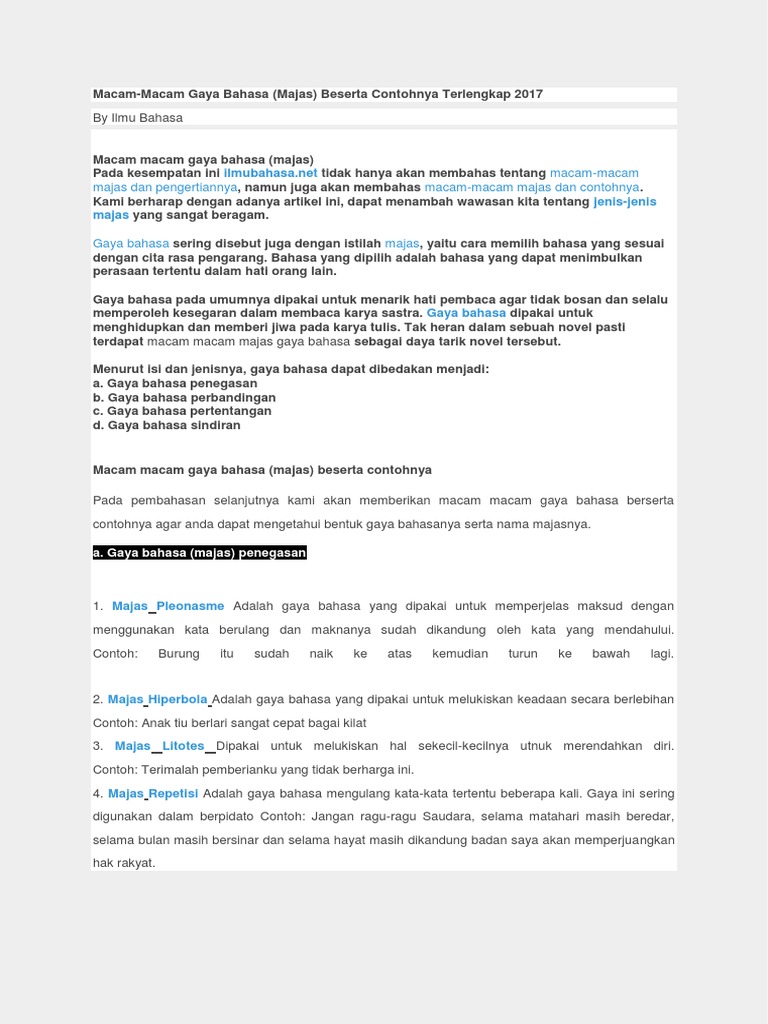Jenis Jenis Gaya Bahasa Dan Contohnya
