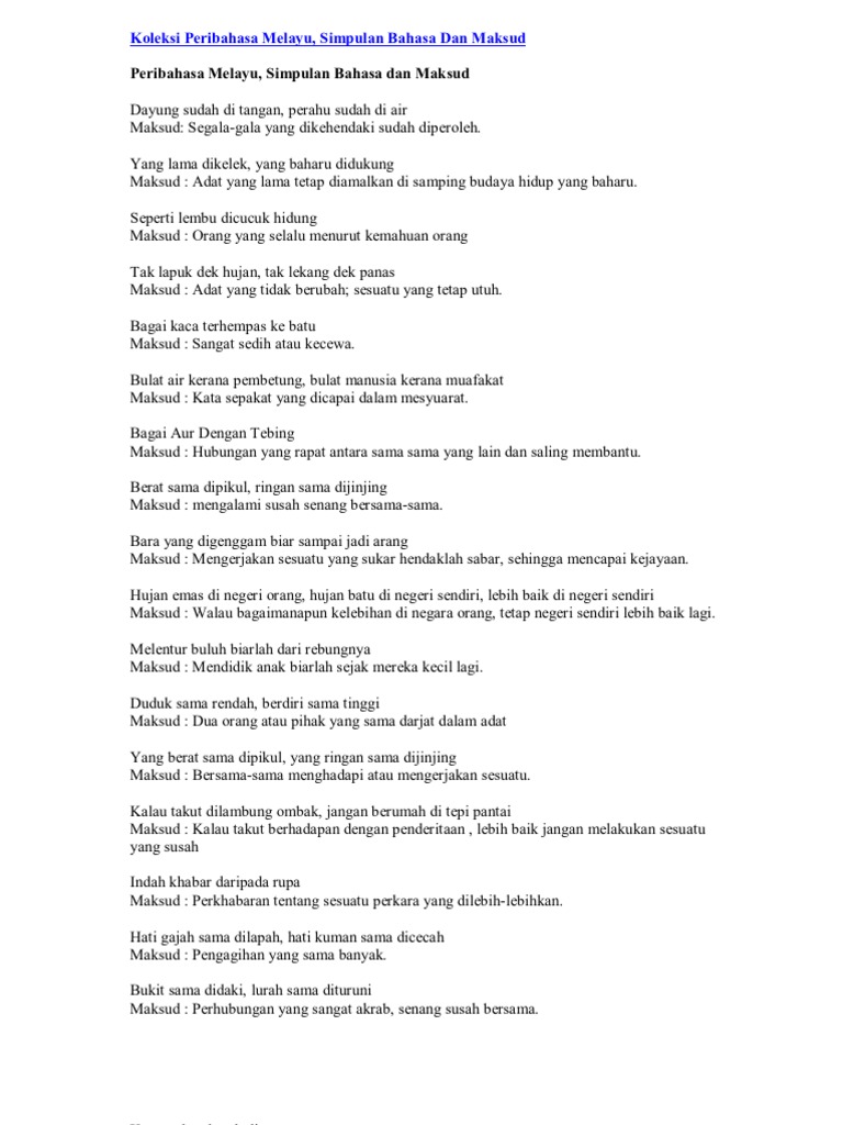 Peribahasa Melayu Simpulan Bahasa Dan Maksud