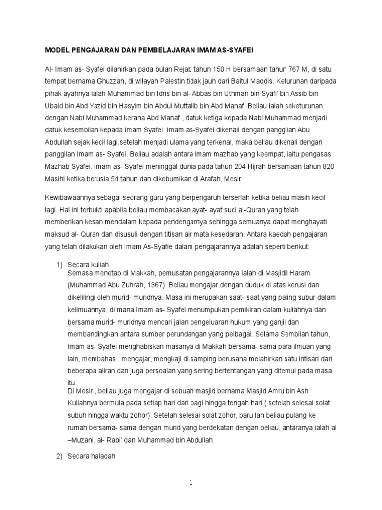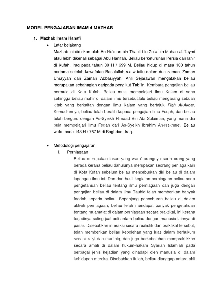 Model Pengajaran Dan Pembelajaran Imam Imam Mazhab