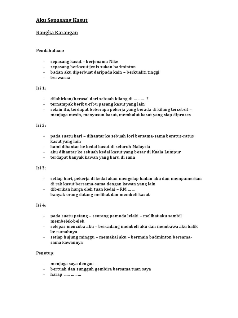 Contoh Karangan Sekolah Rendah Aku Sepasang Kasut