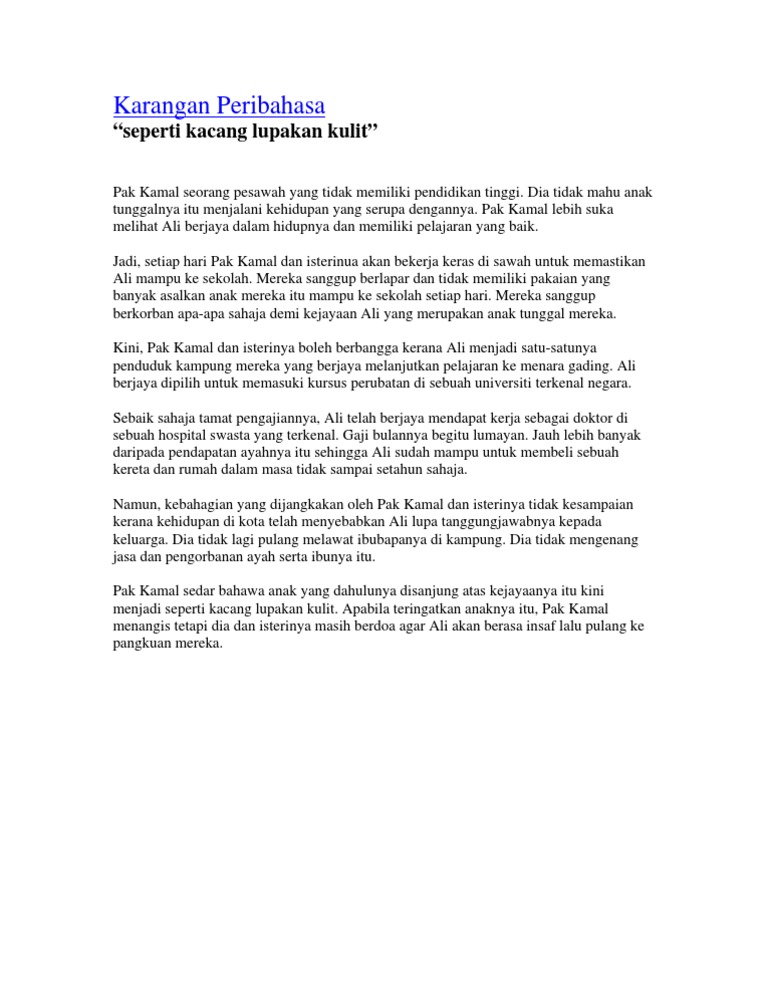 Contoh Karangan Seperti Kacang Lupakan Kulit
