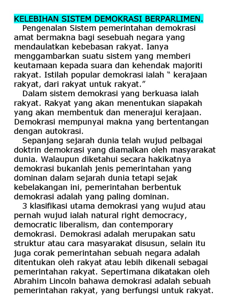 Doc Kelebihan Dan Kelemahan Sistem Demokrasi Berparlimen Amir Majit Academia Edu