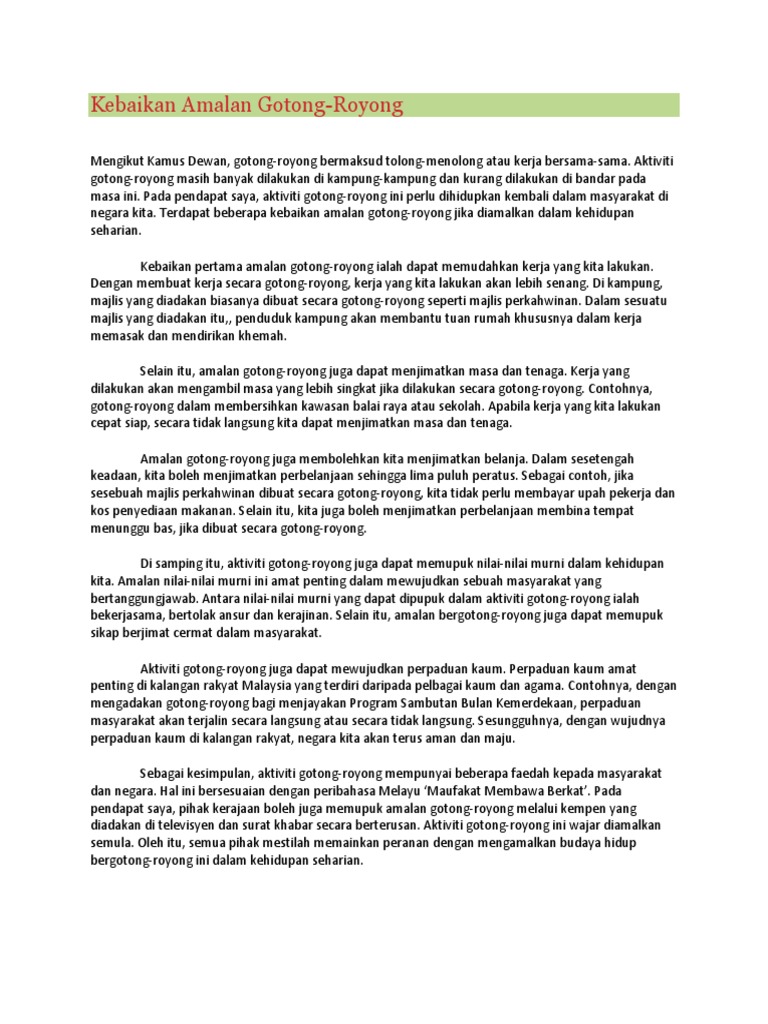 Kebaikan Amalan Gotong Royong