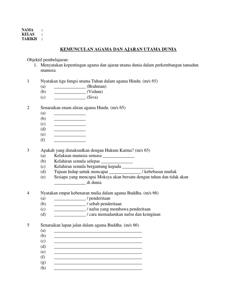Kemunculan Agama Dan Ajaran Utama Dunia Nama Kelas Tarikh