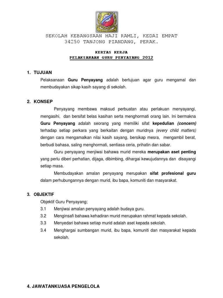 Doc Kertas Kerja Program Guru Penyayang 2016 Ros Afifah Academia Edu