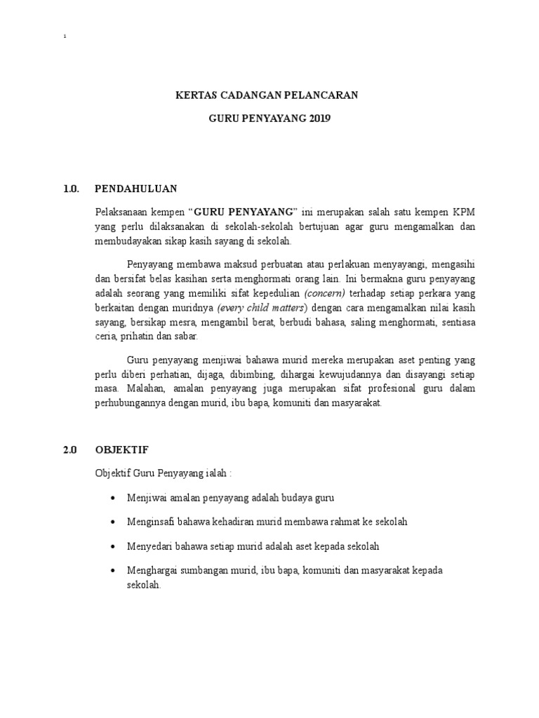 Kertas Cadangan Pelancaran Guru Penyayang 2019