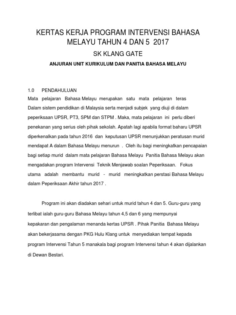 Kertas Kerja Program Intervensi Bahasa Melayu