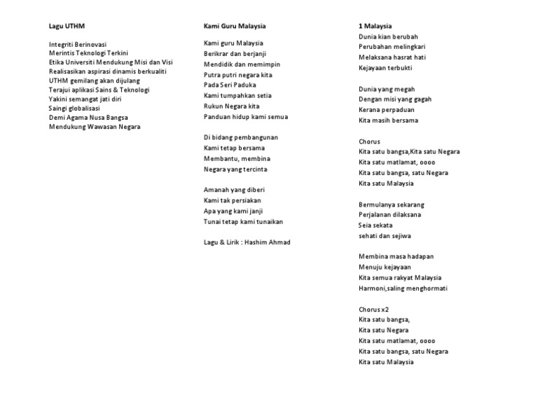 Satu Malaysia Song And Lyrics Imagenation