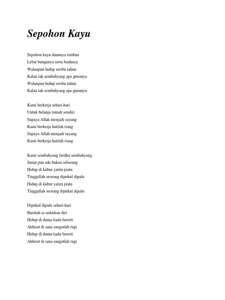 Alfy S Blog Syair Lagu Sepohon Kayu