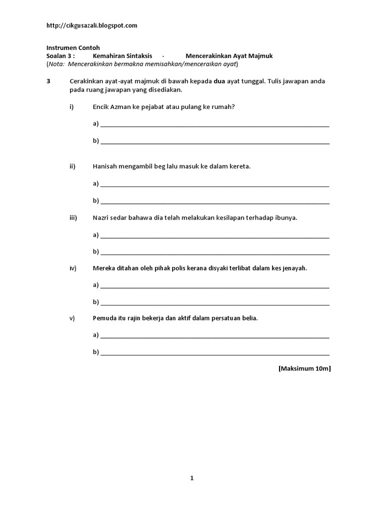 Latihan Ayat Majmuk Dan Ayat Tunggal Spm