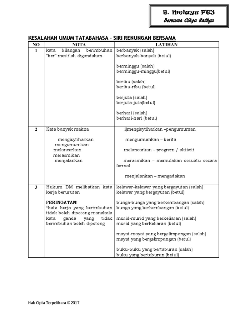 Kesalahan Umum Tatabahasa Siri Renungan Bersama No Nota Latihan 1
