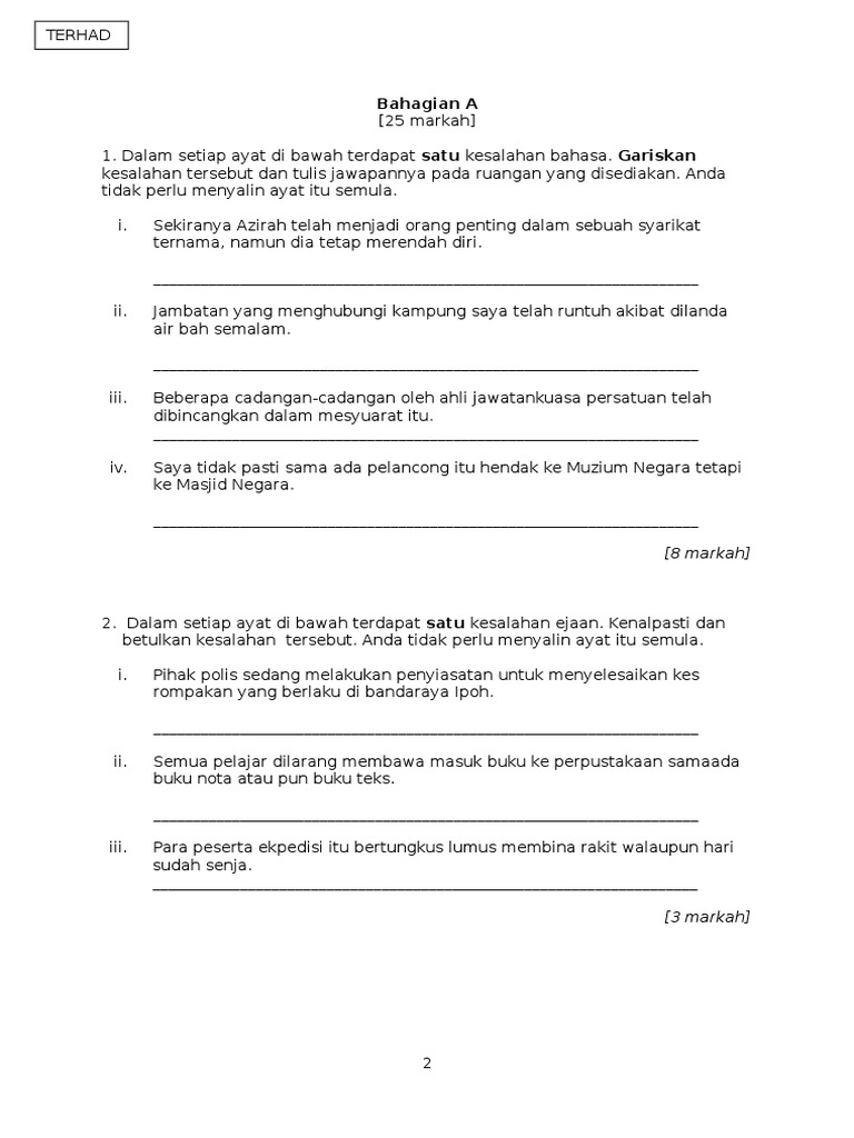 Kesalahan Tatabahasa Latihan Tatabahasa Pt3 Bahasa Melayu Dengan Jawapan