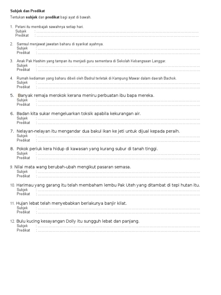 Latihan Subjek Dan Predikat Pt3 Dengan Jawapan