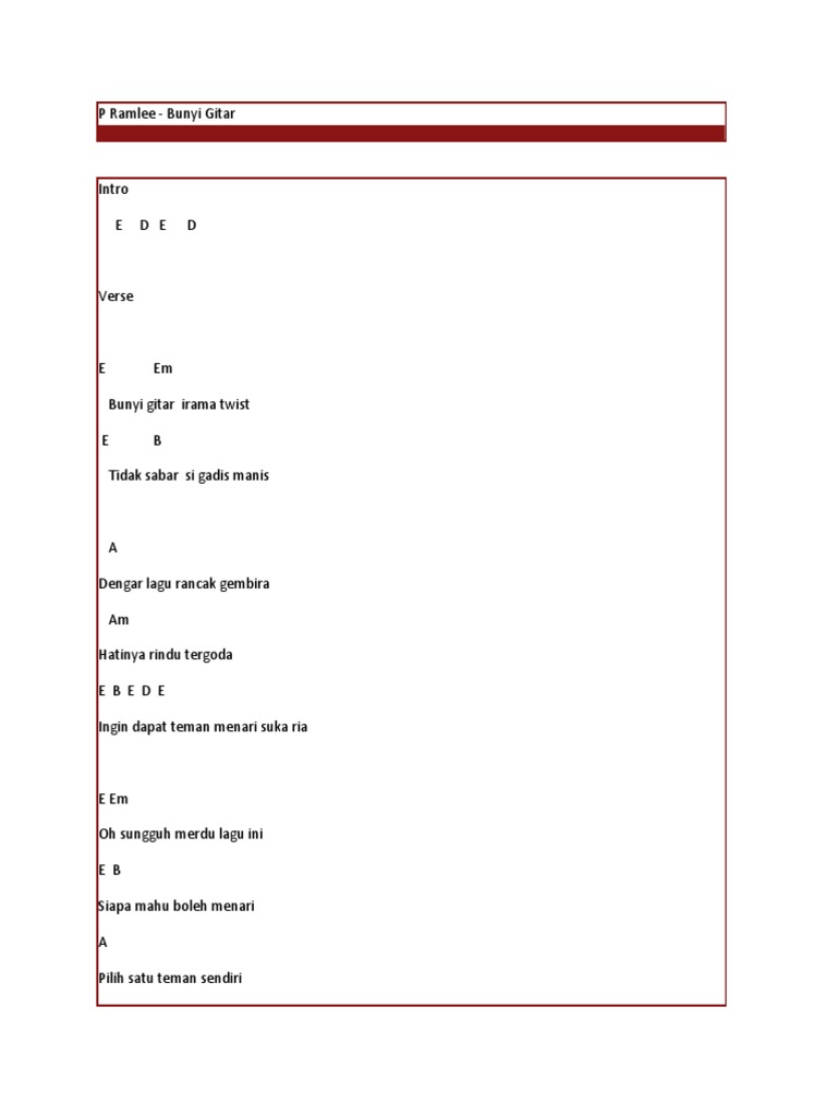 Bunyi Gitar Lyrics P Ramlee Kkbox