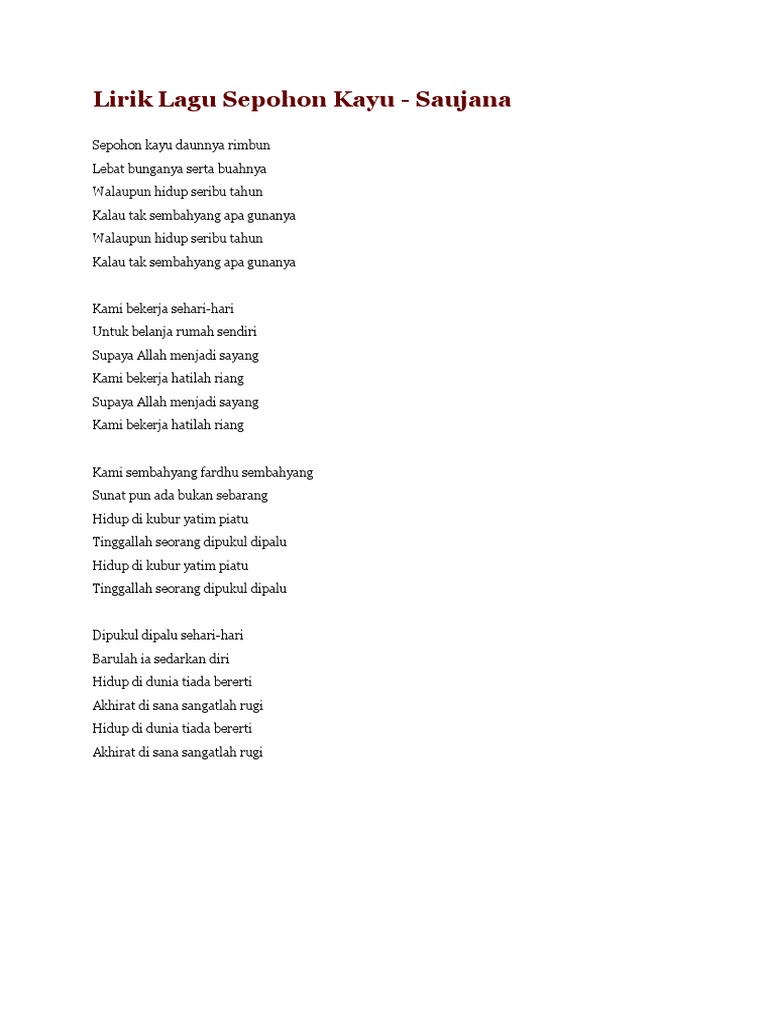 Doc Lirik Lagu Wafiq Azizah Sepohon Kayu Adelia Putri Academia Edu