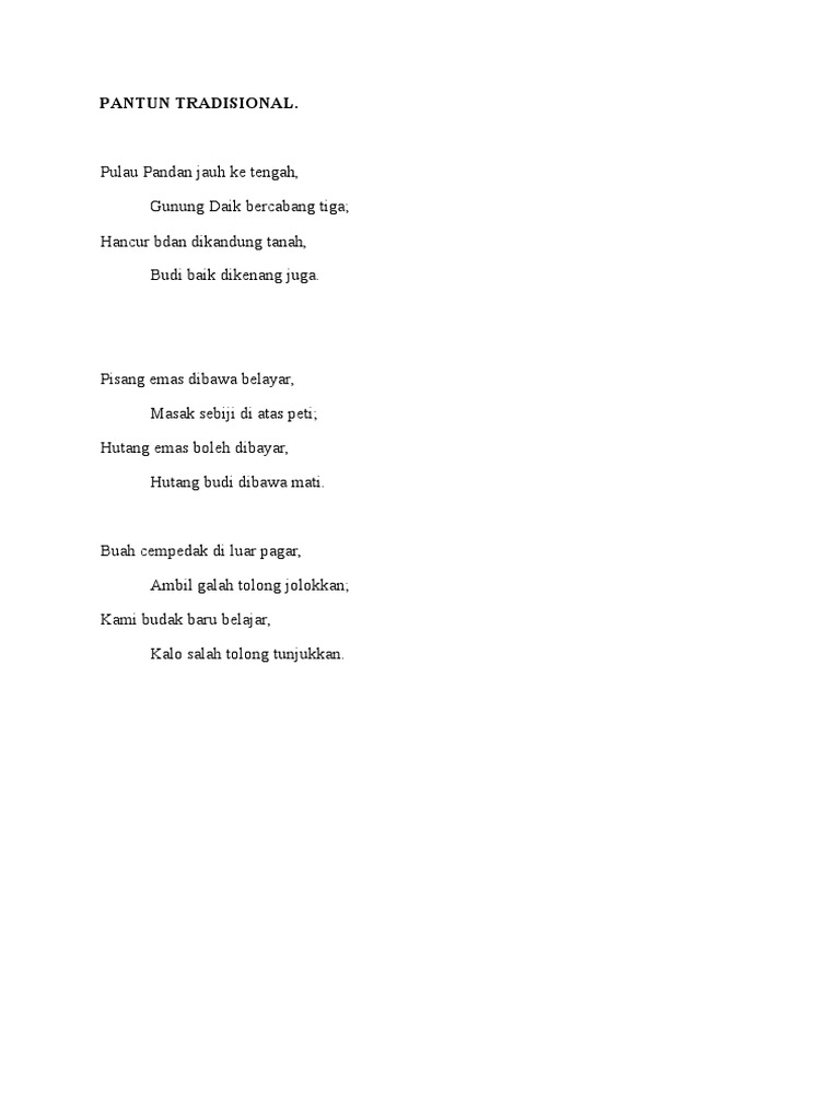 251618554 Pantun Docx Pengenalan Pantun Juga Adalah Bentuk Puisi Melayu Yang Asli Dan Unik Ia Merupakan Sumber Khazanah Dalam Kehidupan Masyarakat Di Course Hero