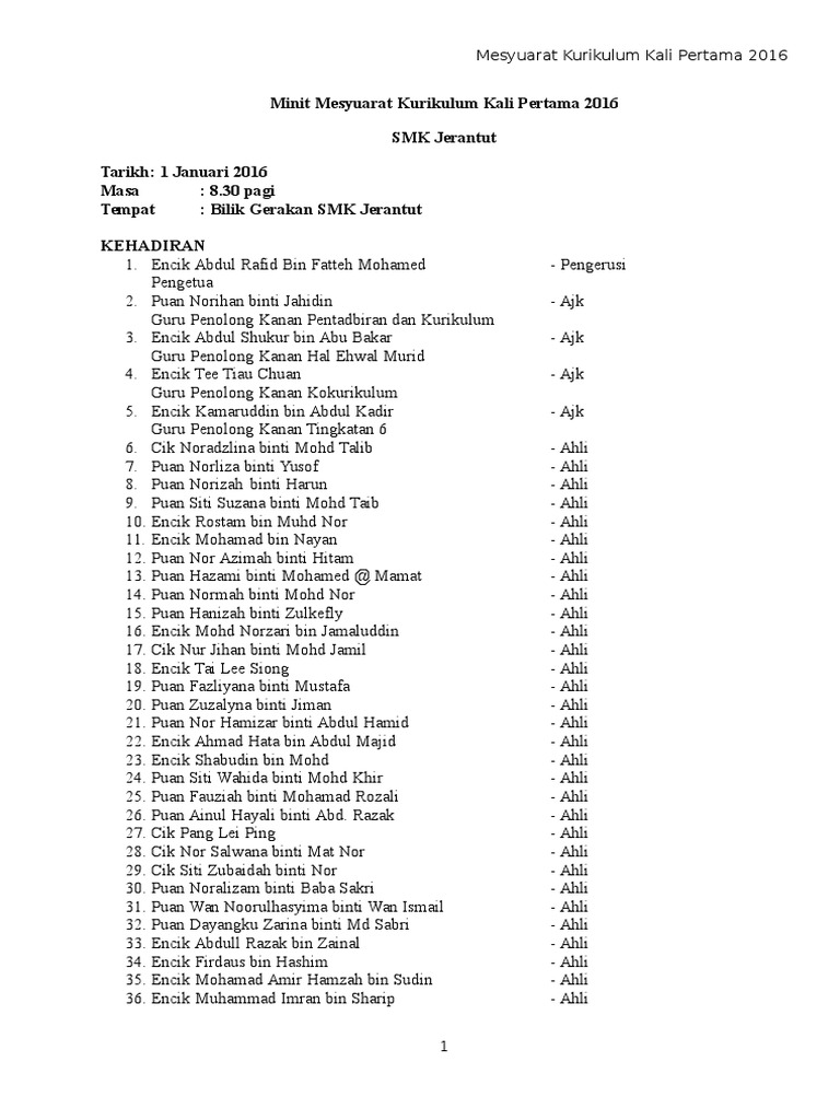 Minit Mesyuarat Pertama Guru 2018 Pages 1 5 Text Version Anyflip