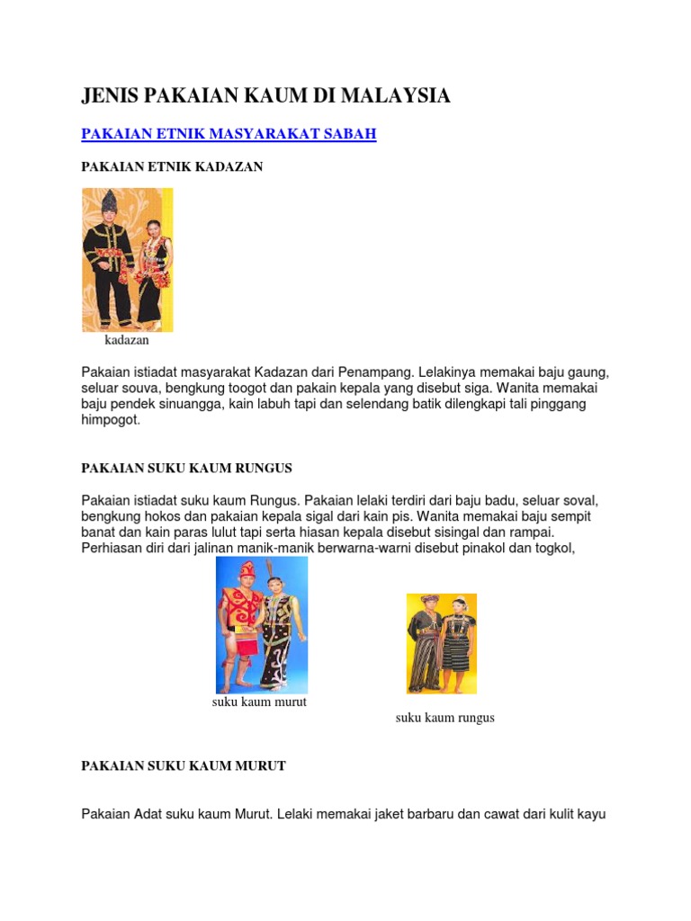 Kaum Di Sabah Pakaian Tradisional Kaum Di Malaysia