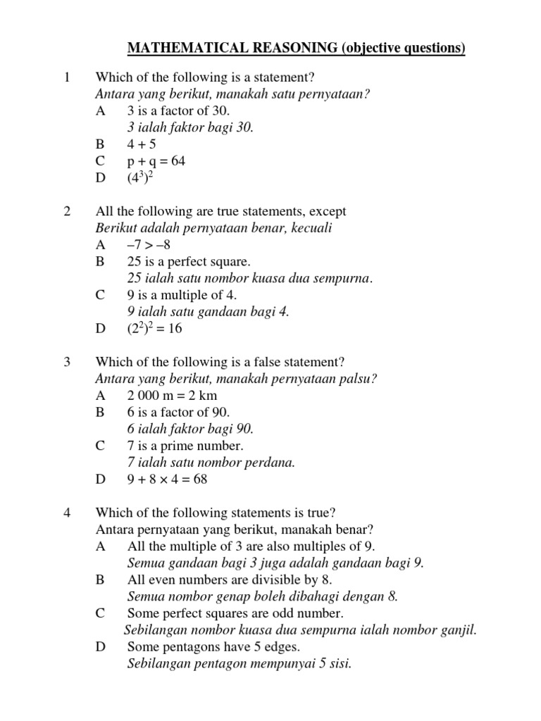 Soalan Pertengahan Tahun Matematik Tingkatan 4