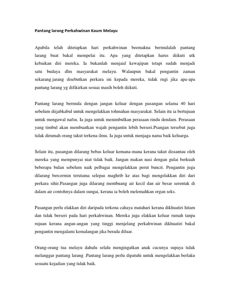 Pantang Larang Adat Resam Orang Melayu Pdf Document