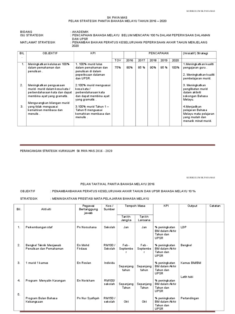 Doc Contoh Pelan Strategik Dan Pelan Taktikal Panitia Bahasa Melayu Hadi Pro Academia Edu