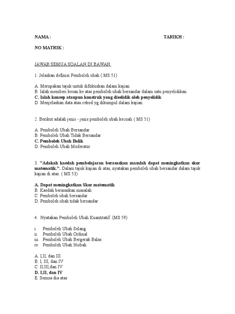 Kuliah 3 Pemboleh Ubah Hipotesis Dan Soalan Kajian