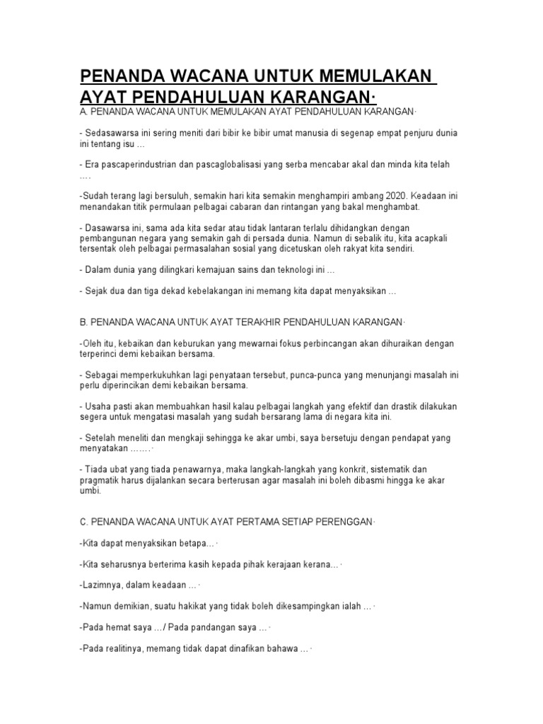 Penanda Wacana Untuk Memulakan Ayat Pendahuluan Karangan
