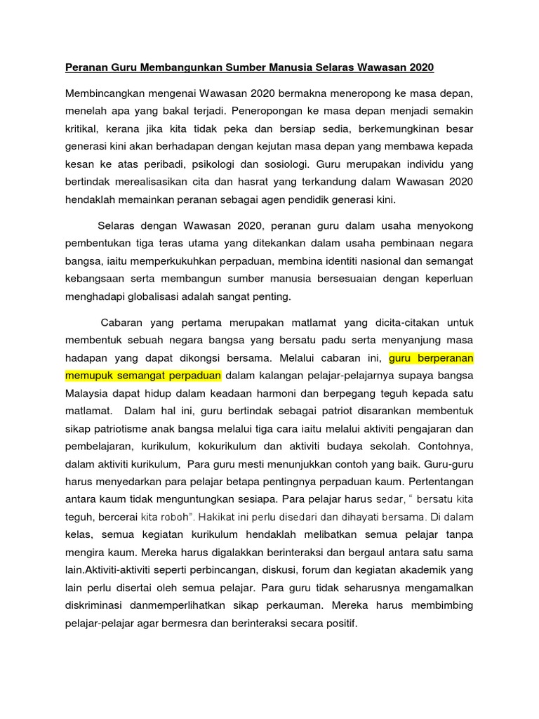 Peranan Guru Membangunkan Sumber Manusia Selaras Wawasan 2020 Docx