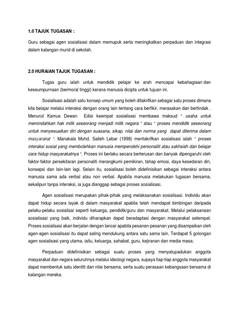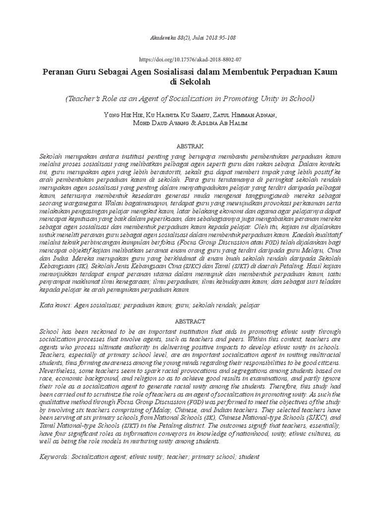 Peranan Guru Sebagai Agen Sosialisasi Dalam Membentuk Perpaduan Kaum Di Sekolah Ukm Journal Article Repository