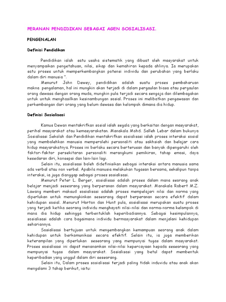 Peranan Pendidikan Sebagai Agen Sosialisasi
